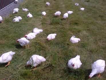 Chickens that are raised outside on pasture free to roam.
